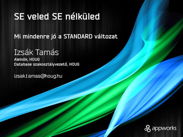 Hogyan tovább, ha nem akarunk Enterprise licencet venni? Megmutatjuk a Standard változat hogyan használható hatékonyan az Enterprise változat "árnyékában". Olyan kérdésekre keresünk választ, mint a mikor és miért elegendő a SE/SEONE? Hogyan lehet visszalépni EE -ről? Milyen HA megoldások állnak rendelkezésre? Licenc különbségek?