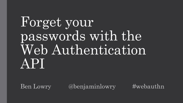 This talk will provide an introduction to WebAuthn, outlining the benefits, tradeoffs, and future of this new authentication protocol. You will see how to build an experience that puts control over their credentials (literally) back into the hands of your users.