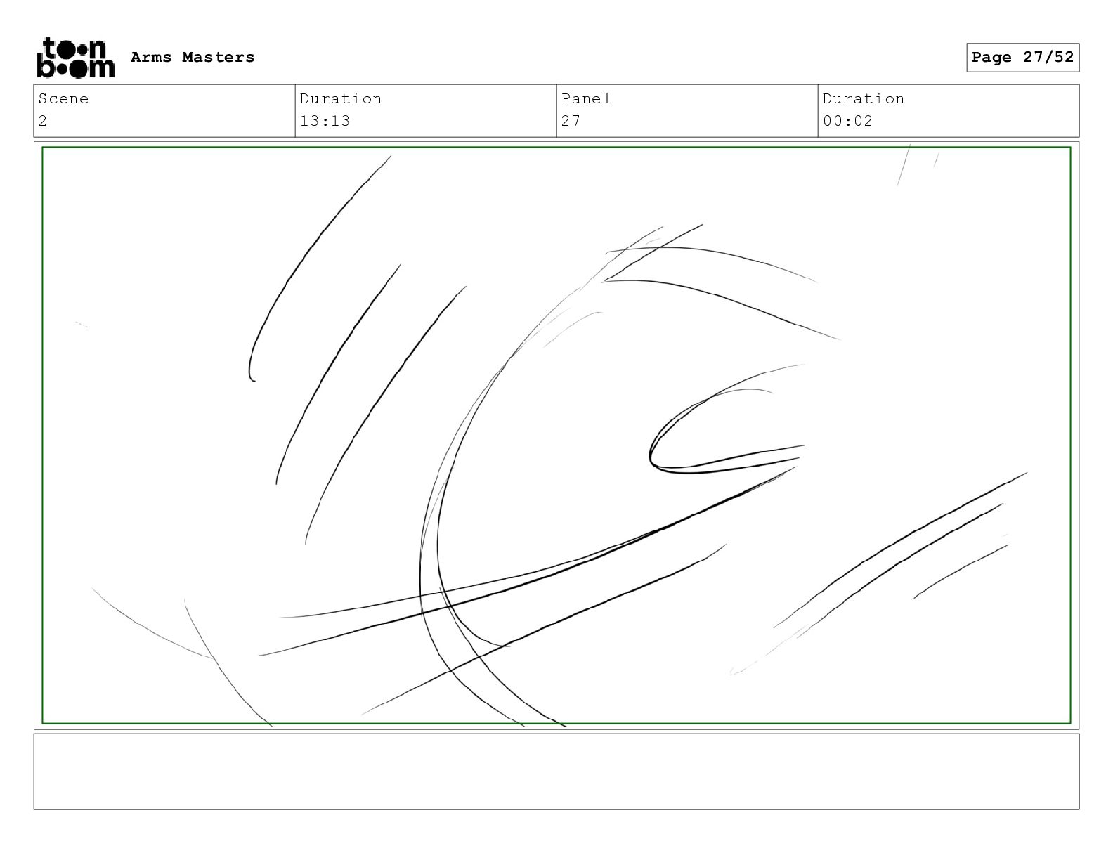 Scene 2 Duration 13:13 Panel 27 Duration 00:02 Arms Masters