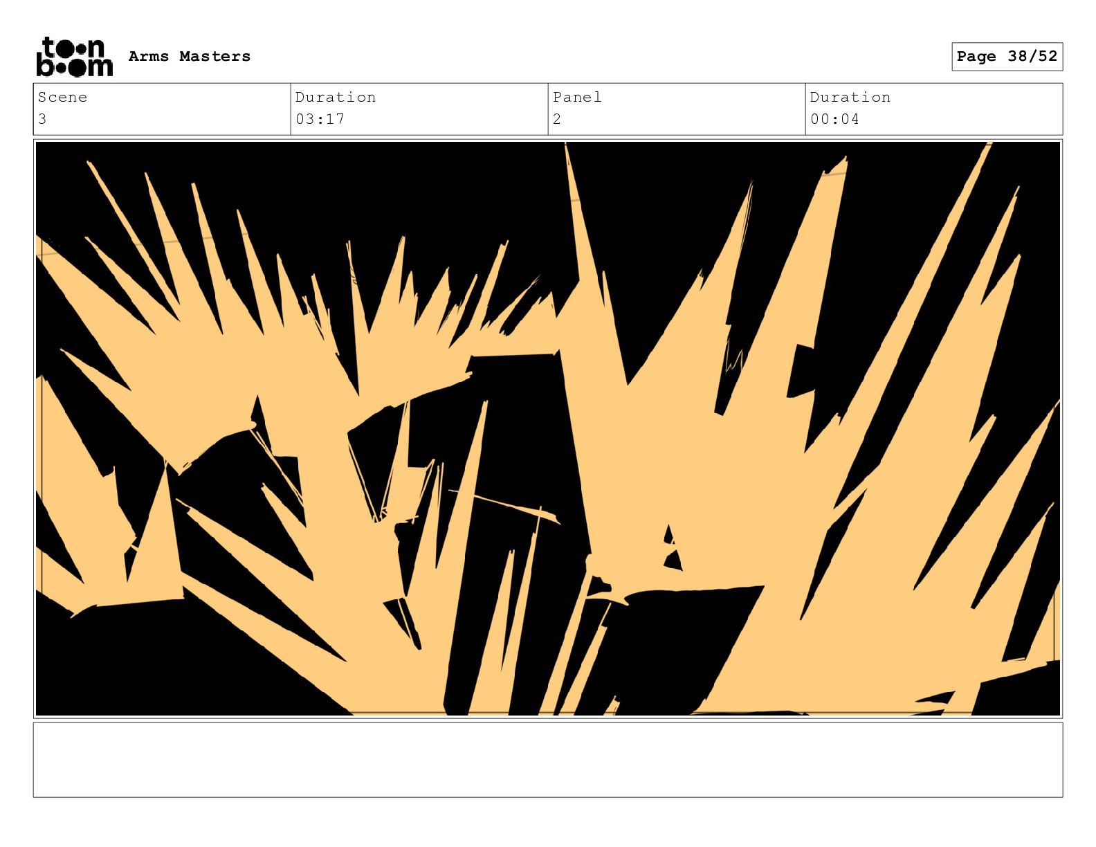 Scene 2 Duration 13:13 Panel 15 Duration 00:02 Arms Masters