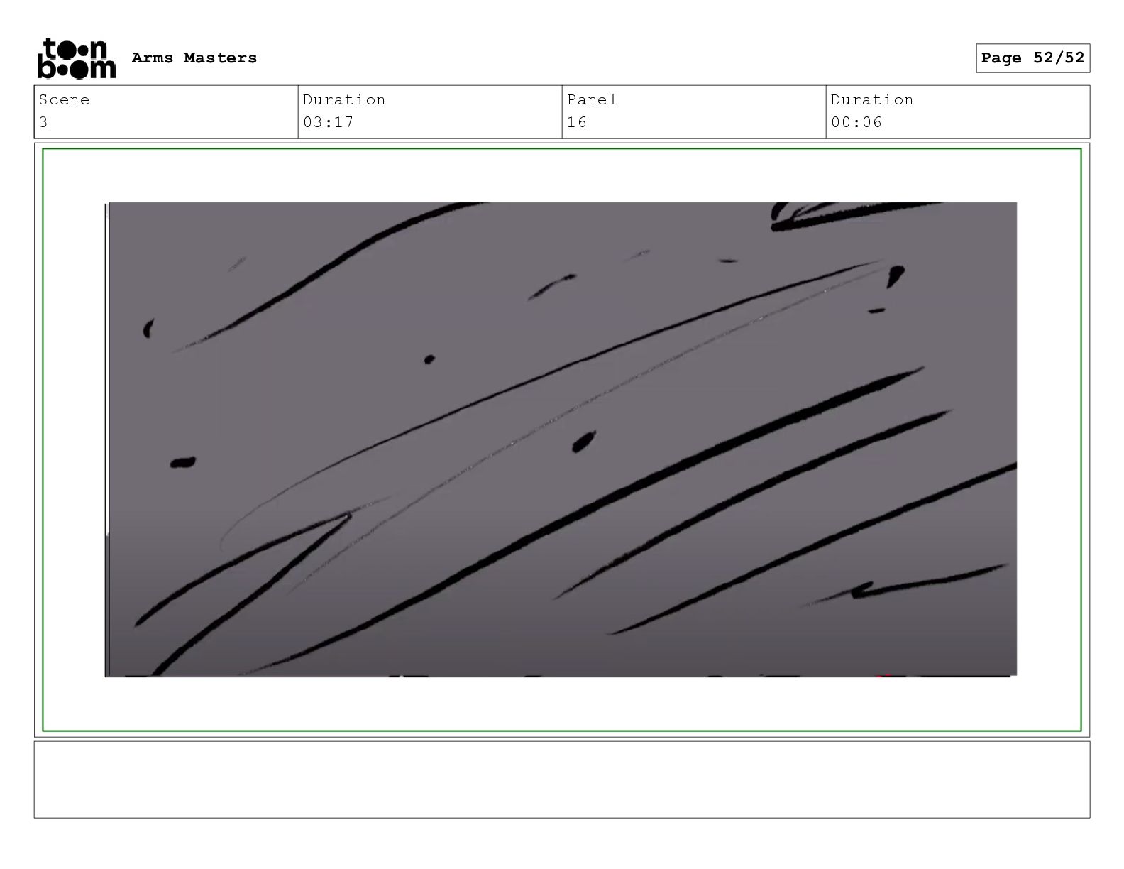 Scene 2 Duration 13:13 Panel 28 Duration 00:06 Arms Masters