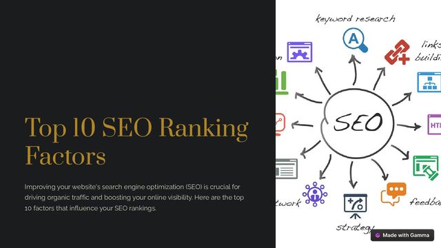 optimization (SEO) is crucial for driving organic traffic and boosting your online visibility. Here are the top 10 factors that influence your SEO rankings.