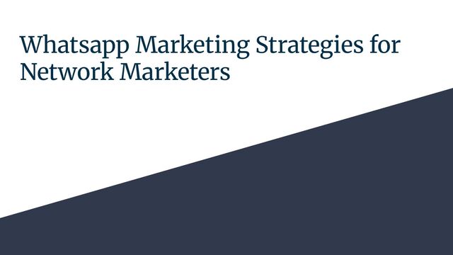 Whatsapp to grow your network marketing business! In this presentation, you will learn how to build connections, drive engagement, and convert leads using one of the most powerful tools - Whatsapp.