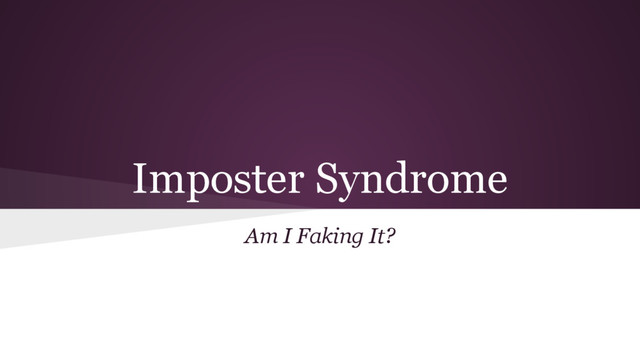 Do you feel like you're faking it? like you don't feel good enough to do your job? Feeling like you've blagged your way through your career? Then like me and hundreds of others, you might be suffering from imposter syndrome. During my talk I am going to discuss what imposter syndrome is and how it feels. Then I'm going to talk you through why people suffer from it and how people overcome it.