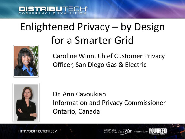 and benefits for the energy sector; • However, Big Data may also enable expanded surveillance, increasing the risk of unauthorized use; •Big Data needs Big Privacy – you can achieve both goals in a doubly-enabling, positive-sum paradigm through Privacy by Design; •Lead with Privacy by Design, featuring control over customer energy usage data – thereby preserving consumer confidence and trust; •Avoid privacy by chance, or worse – Privacy by Disaster!