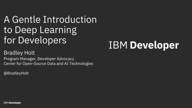 While we are a long way out from machines that can perform artificial general intelligence (AGI) tasks, deep learning can be used for many narrow artificial intelligence (AI) tasks including image or audio classification, facial recognition, object recognition, image caption generation, and natural language processing. We will explore how developers can easily integrate open source deep learning models into their applications.