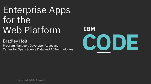 2018 IBM Corporation • Provide instant page transitions with a single-page app • Minimize time-to-interactive with the PRPL pattern • Use a local database (IndexedDB, localForage, or PouchDB)