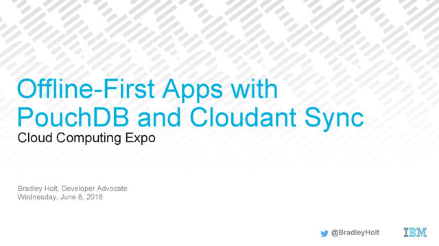 It's easy to assume that your app will run on a fast and reliable network. The reality for your app's users, though, is often a slow, unreliable network with spotty coverage. What happens when the network doesn't work, or when the device is in airplane mode? You get unhappy, frustrated users. An offline-first app is an app that works, without error, when there is no network connection. Offline-first apps built with PouchDB and Cloudant Sync can provide better, faster user experiences by storing data locally and then synchronizing with a cloud database when a network connection is available.