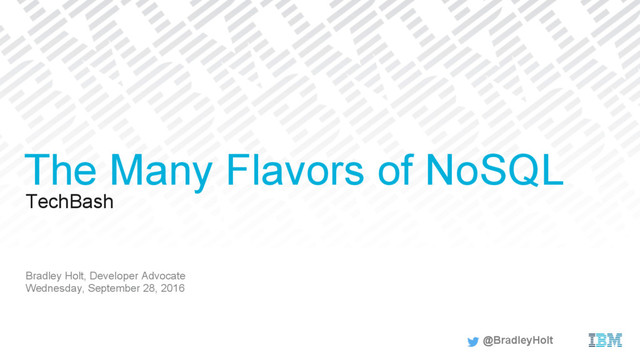 8. @BradleyHolt Catalog Document Database Key/Value Store Graph Database Full Text
