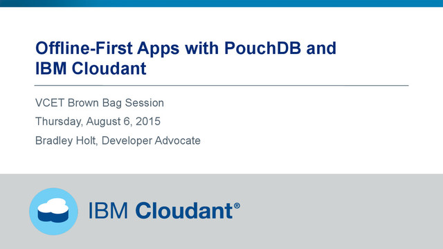 Mobile web apps shouldn’t stop working when there’s no network connection. Based on Apache CouchDB, PouchDB is an open source syncing JavaScript database that runs within a web browser. Learn how to use PouchDB and IBM Cloudant to build offline-first apps that provide a better, faster user experience both offline and online.