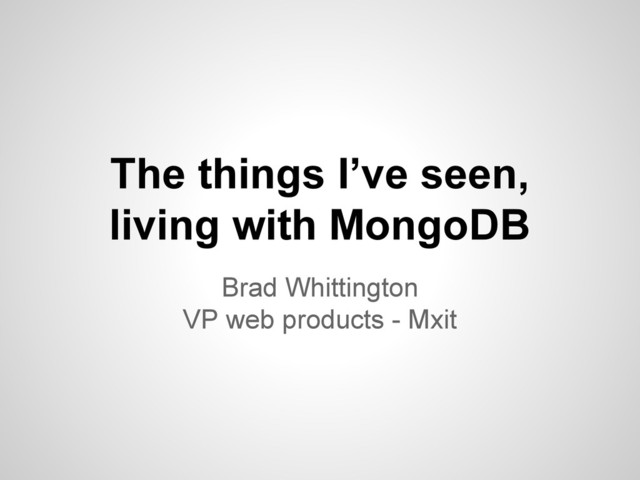 The things I’ve seen, living with MongoDB Brad Whittington VP