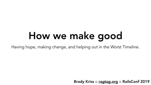 We are in the Worst Timeline. But together, ALL TOGETHER, we can make it better. Moment by moment. Bit by bit. Drop by drop.
