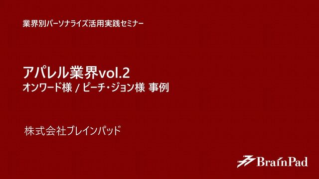 Strictly Confidential 19 最後に 分類 課題 弊社解決策 支援事例 LTV向上 初回購入者が少ない。 (サイト上でのファーストコンバージョン) • ECサイト、アプリ上での パーソナライズ施策を強化 • バロック • ピーチ・ジョン 2回目以降の購入に繋がらない。 (F2転換) • プッシュチャネルでの施策強化 • ECサイト、アプリ上での パーソナライズ施策を強化 • バロック • ピーチ・ジョン 複数ブランドでのクロスセルができていない。 • 施策分析、顧客の分析 • プッシュチャネルでの施策強化 • OMO施策の強化 • バロック OMO施策 店頭とECの会員データが一元管理されていない。 • CDPで一元管理 • バロック スタッフやコーディネートデータをパーソナライズしたい。 • スタッフスタートデータ連携 • バロック 店舗とECデータを連動したOMO施策が打てていない。 • CDPによるデータ一元管理と分析 • マーケティングアクションツールによるパーソナライ ズ施策の実行 施策につながる分析 そもそもお客様の状況を把握するためのデータや見方の手段、 知見が社内にない。 • データアセスメント • 顧客構造分析 • バロック NPSなど定性的なデータを分析して施策に活用したい。 • 拡張分析によるユーザー属性や行動による相 関分析 • 三陽商会 セール依存ではなく正規価格での販売比率を上げたい。 また、そういった顧客をちゃんと把握したい。 • 購買確率予測モデル • バロック 弊社ではアパレル固有のトレンドやニーズに合わせた解決策をご提案し続けて参ります。 お困りのことがありましたらまずはブレインパッドにご相談ください!