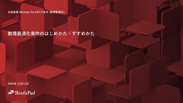 2024年12月11日に実施した、白金鉱業 Meetup Vol.16@六本木(数理最適化)でのブレインパッド羽田の登壇スライドです。