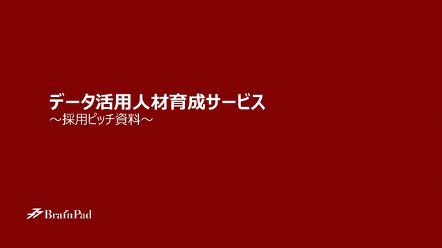 課題設定~報告・提案に至るプロセスを演習を通じて学べる ⚫ 様々な業種・職種の方とグループワークを行いデータ活用の幅を広げることを体験 可能 DXに重要なプロジェクト推進力・の育成 ⚫ 現場メンバーから経営層まで幅広いレイヤーを対象としたカリキュラムのご提供 ⚫ 分析とビジネスの橋渡しをするうえで求められるスキルを実戦形式で獲得可能 コアスキルを学べるカリキュラムを提供 ⚫ データサイエンスにおける集計・可視化の基礎から、データベース・統計プログラム言 語(Python)を使用した、データの加工・集計、統計解析、機械学習システム の実装まで、データサイエンスの広い領域をカバー ⚫ 自分の手で動かしてみるハンズオン形式で講義を実施 現場のデータサイエンティストの知見を注入 ⚫ ブレインパッドとして、ビジネスと分析の双方に知見が深いブリッジ人材の育成に注 力(コンサル・データサイエンティスト混成案件も増加中) ⚫ クライアント社員と混成チームで結成し、自走までをOJT形式で推進した実績も 多数 200名以上の社内データサイエンティストの育成実績 ⚫ 多くのデータサイエンティストを育成してきた背景があり、DSのスキルや育成に対す る知見を保有 ⚫ 他にも、ビジネスアナリストやデータエンジニアのようなデータ活用に関わる人材を多 数保有 様々な業種の企業に対する支援実績 ⚫ 大手企業を中心にのべ1,300社のデータ活用プロジェクトをご支援してきた実績 ⚫ DX組織・データ分析組織の内製化に向けた、約600社・約80,000人の受講 実績があるデータサイエンティストの教育プログラムを保有 • 当社は、創業以来20年以上に渡り、様々な知見やノウハウを蓄積してきました。その経験を結集したパッケージ研修として、 以下のカリキュラムを提供しています。