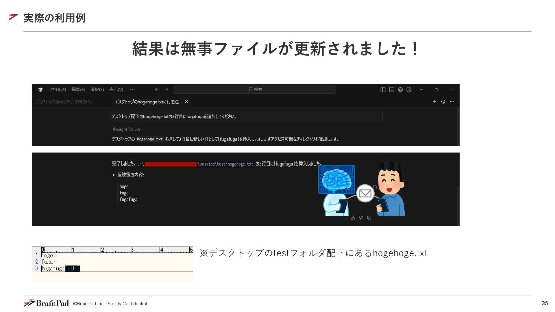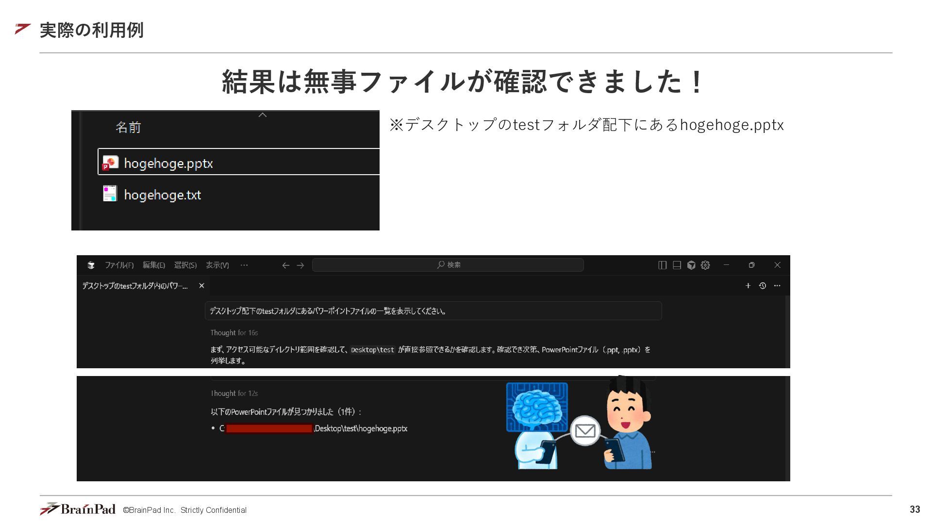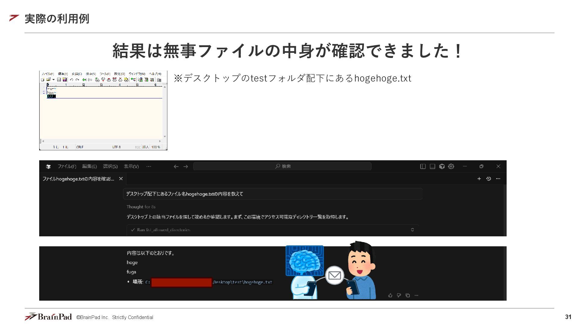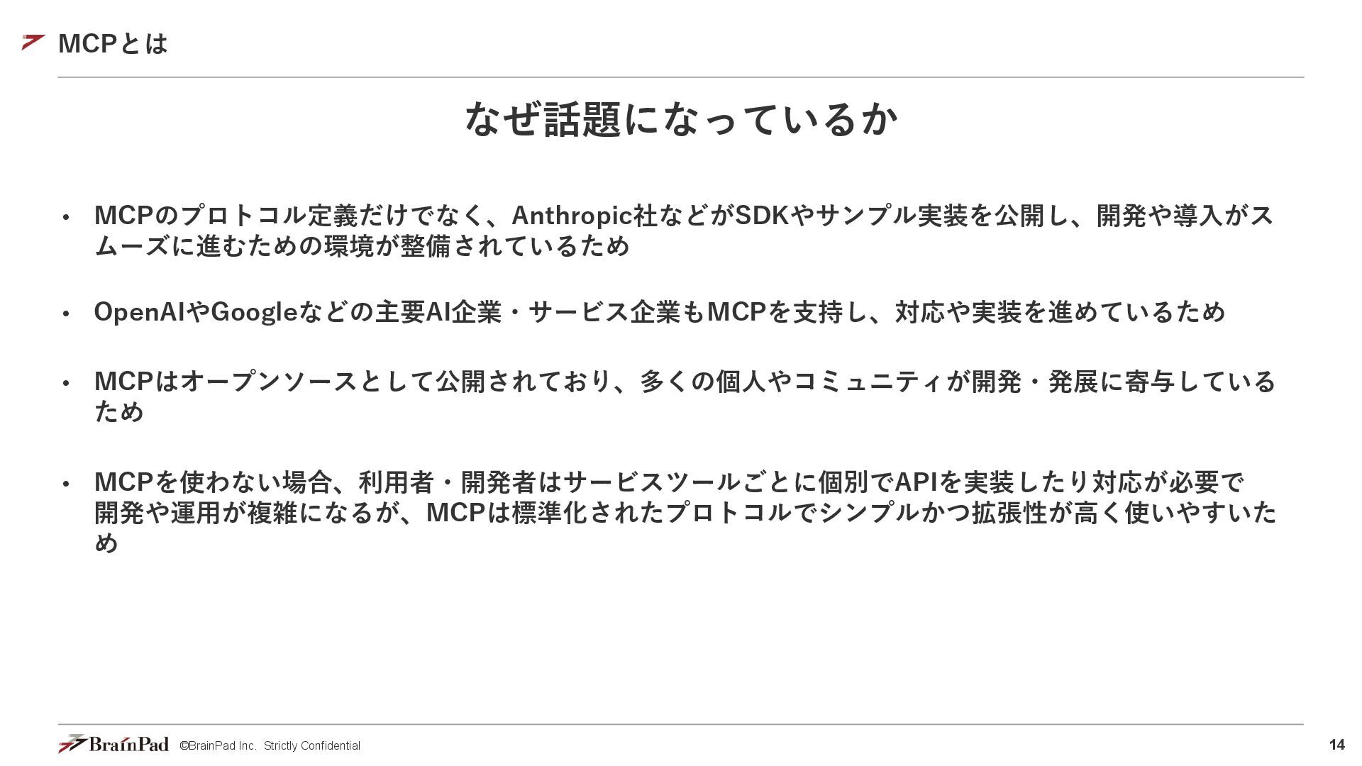 -g @modelcontextprotocol/server-filesystem ※ローカル環境ではなくリモート環境でMCPサーバーを実行することも可能です。 その場合は本手順は不要です。 ⑤CursorにMCPサーバーを設定 Cursorを起動して、メニューのファイル→ユーザー設定→Cursor Settings Tools&MCPを選択し、New MCP Serverをクリックして以下の値を設定 ------------------- { "mcpServers": { "filesystem": { "command": "npx", "args": [ "-y", "@modelcontextprotocol/server-filesystem", “【対象としたいディレクトリパス】"] } } }