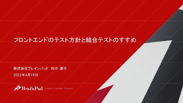 株式会社ブレインパッド 田中 康平 2022年4月19日 フロントエンドのテスト方針と結合テストのすすめ