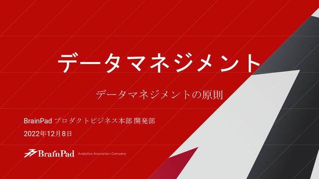 BrainPad プロダクトビジネス本部 開発部 2022年12月8日 データマネジメント データマネジメントの原則