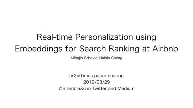 Real-time Personalization using Embeddings for Search Ranking at Airbnb
