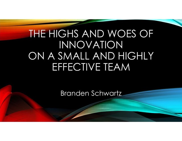 Is your organization one of the many that is exploring the best way to introduce innovation and R&D efforts into the mix of yet another crud app and third-party software maintenance projects? Are you part of a large enterprise without a formal structure to support any work that doesn’t have concrete deliverables at the end of a predetermined timeline? So am I. This is the story of how a handful of developers formed a new team to address multiple business problems and produce exceptional results in unfamiliar territory while clearing both political and technical hurdles and releasing new features in as little as one day. Along the way, we’ve established patterns and formed habits that help us achieve exponentially more together than alone, be seamlessly accountable to each other (and the business) and make us excited to come to work to see what we’ll accomplish next.