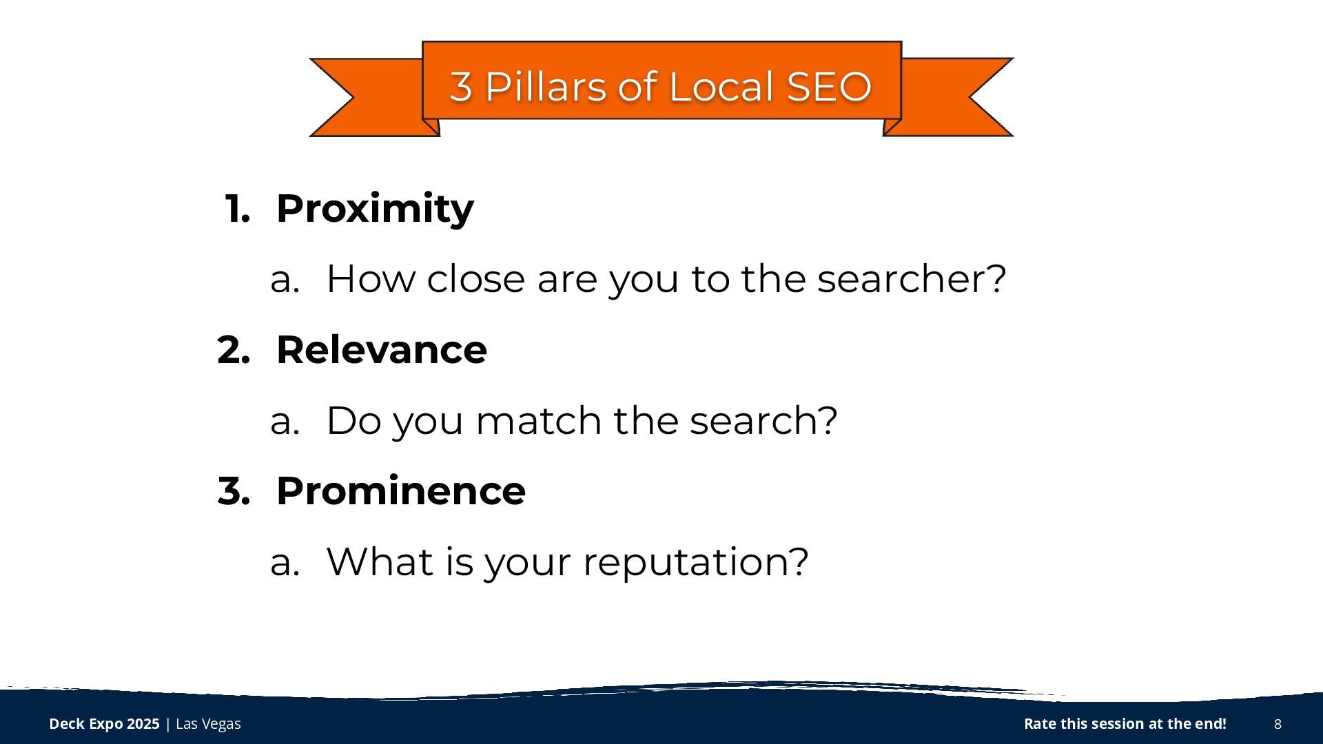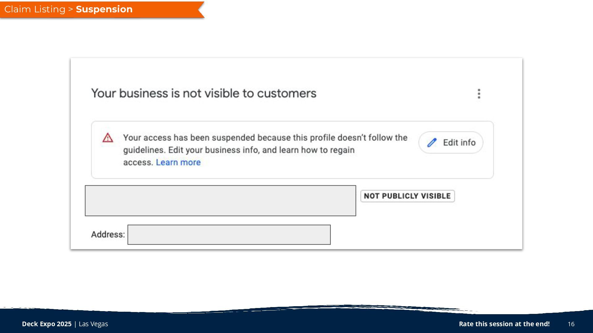When your potential customers search your name online, what do they find? Are you putting your best foot forward on Google and maximizing your brand’s first impression? In this talk, we will be looking at all the ways you can shape and influence how your brand appears on Google. From initially claiming your profile to continual maintenance and updates, you’ll learn exactly what to do to keep your profile updated and ranking for local and “near me” searches.