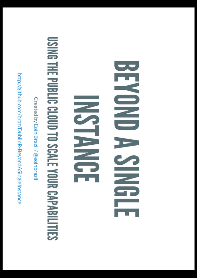 Dublin R User Group and ended with an example of running RStudio in EC2. This talk picks up that journey and looks to the issues of scaling beyond the single instance. Github: Slides: Github: Slides: https://github.com/braz/DublinR-ML-treesandforests https://speakerdeck.com/braz/introduction-to-machine-learning-with-r https://github.com/braz/DublinR-ML-machine https://speakerdeck.com/braz/machine-learning-of-machines-with-r