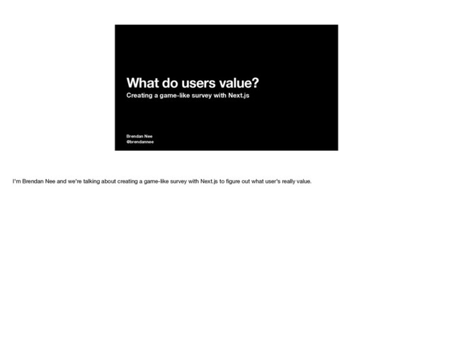 with Next.js @brendannee I'm Brendan Nee and we're talking about creating a game-like survey with Next.js to figure out what user's really value.