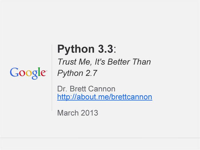 In this talk I will try to convince you that Python 3.3 is superior to Python 2.7 by going over the differences between Python 2.7 and Python 3.3 along with benchmark information to show where Python 3.3 shines in comparison to Python 2.7 (and vice-versa). If I accomplish my goal, you will walk out of this talk convinced that Python 2.7 is not the final version of Python you want to support.
