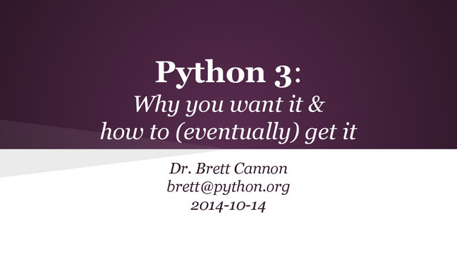 compare output from Modernize as an alternative • Can use Tox to run tests under various Python versions ◦ Once you can run under Python 3 you will want this ability