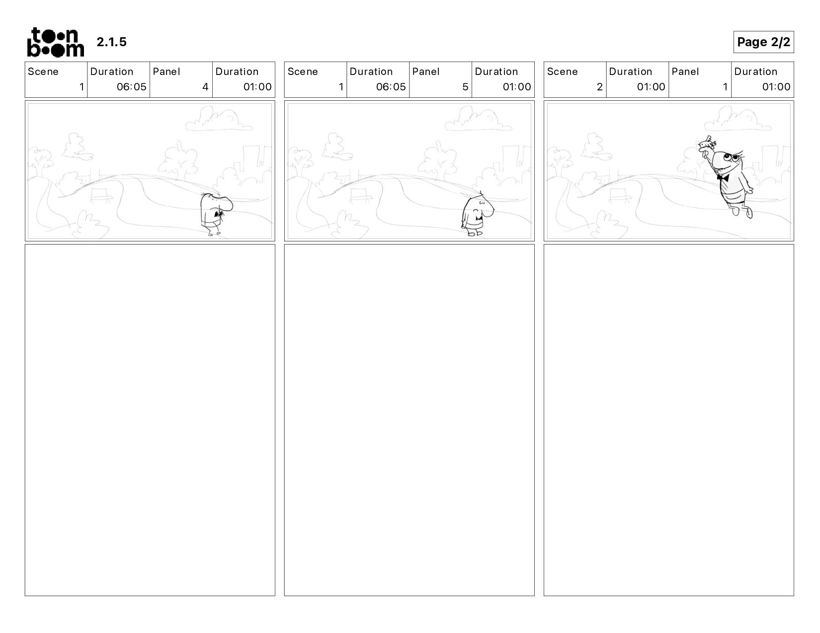 Scene 1 Duration 06 05 Panel 2 Duration 01 00 Scene 1 Duration 06 05 Panel 3 Duration 01 00 2.1.5 Page 1/2