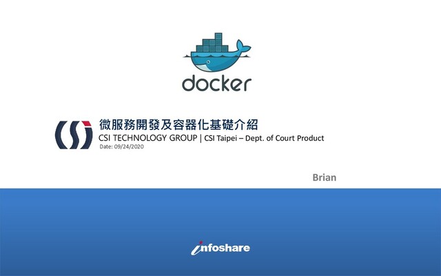 微服務開發及容器化基礎介紹 Date: 09/24/2020 CSI TECHNOLOGY GROUP | CSI Taipei –