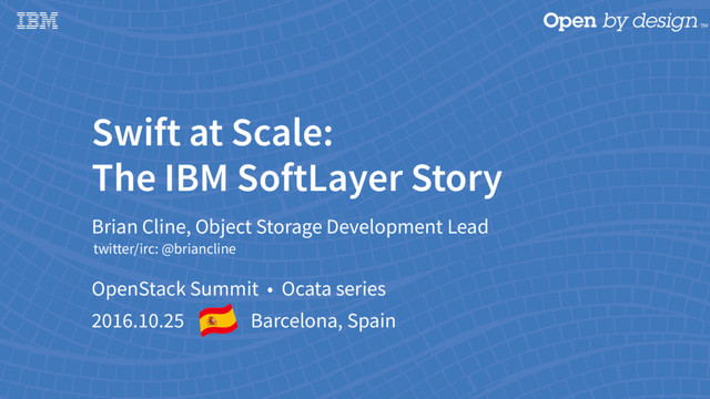 sometimes with backports Authentication Swauth — some internal patches and enhancements Keystone (APIv3) — starting with Bluemix accounts Metadata Search Elasticsearch Monitoring & Logging collectd, Nagios, Capacity Dashboard Logstash, Kibana, Graphite, Grafana slogging Automation Chef, Jenkins, Fabric