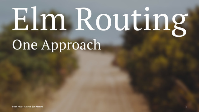 Action -> Model -> Html -- view address model = in div [ class "app" ] [ div [ classes [ "navbar", "navbar-inverted" ] ] [ div [ class "container" ] [ a [ class "navbar-brand" , href (Route.urlFor Route.Home) ] [ text "Mantl" ] , ul [ classes [ "nav", "navbar-nav" ] ] [ link Route.Home "Home" , link Route.HealthOverview "Health" ] -- health status elided to save space ] ] ] , div [ classes [ "container", "content" ] ] [ body ] ] Brian Hicks, St. Louis Elm Meetup 18