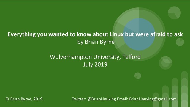 these are the most expensive and fastest systems that can be purchased or created. US: Summit (created by IBM for Oak Ridge National Laboratory) uses IBM POWER9 CPUs and Nvidia Tesla GPUs, cost ~ $200 million, LINPACK benchmark ~143.5 petaflops. China: Sunway TaihuLight (created by China’s own NRCPC) uses SW26010 manycore 64-bit RISC processors, cost ~$273 million, LINPACK benchmark ~93 petaflops. Linux 102 by Brian Byrne. Twitter: @BrianLinuxing Email: [email protected]