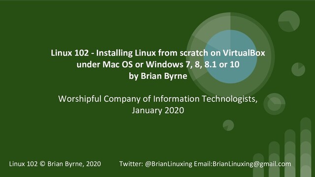 Linux 102 - Installing Linux from scratch on VirtualBox under Mac OS or Windows 7, 8, 8.1 or 10 by Brian Byrne