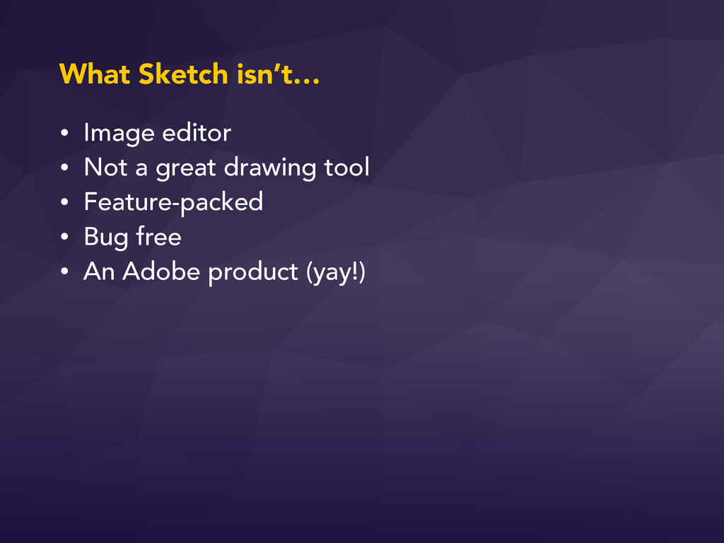 What Sketch isn’t… • Image editor • Not a great