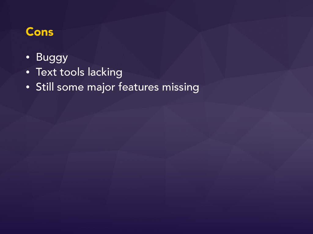Cons • Buggy • Text tools lacking • Still some
