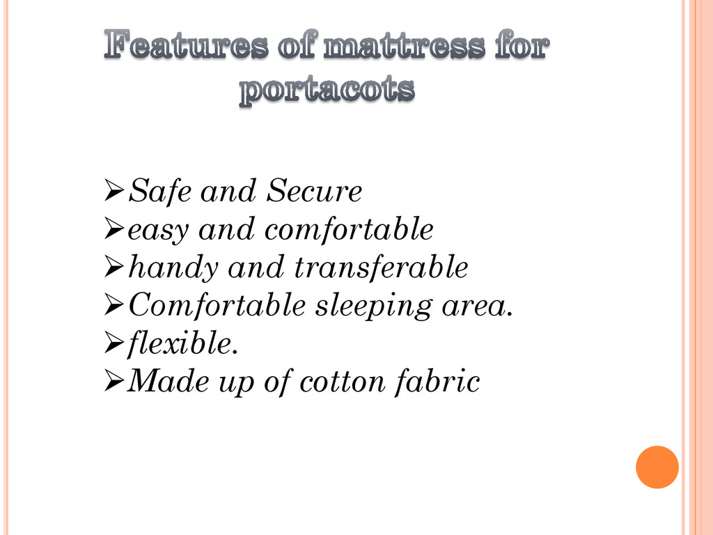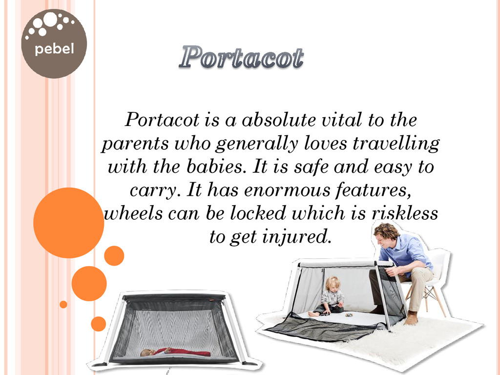 The ,Portacot Mattress, lightweight an easy to assemble, offering your baby comfort wherever you go, base height can be raised for use with newborns, 2 lockable wheels for easy maneuverability, padded mattress for extra comfort, mesh sides for ventilation and baby visibility.