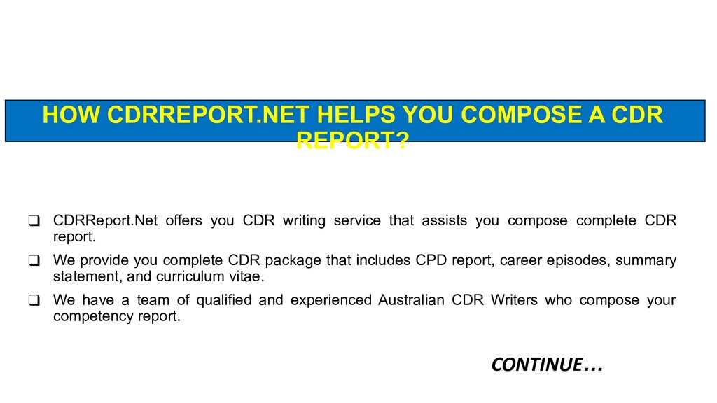 We are most popular to prepare cdr report for your career in Australian engineering service sector. Please click the links that follow below to get CDR report. We are the best choice for the CDR Report Generation. CDR Writing TipsAustralia CDR Sample Free Download