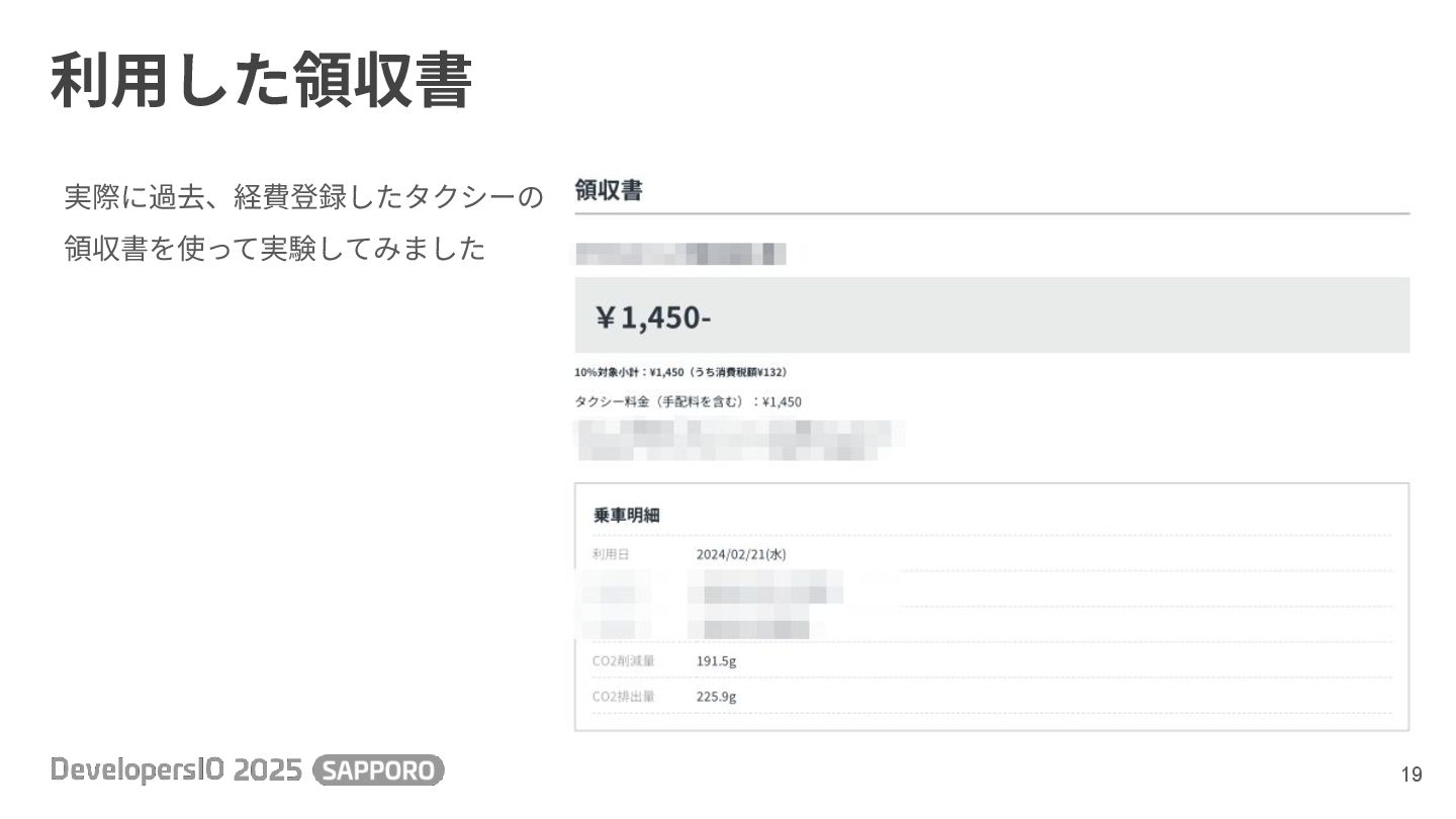 19 実際に過去、経費登録したタクシーの 領収書を使って実験してみました 利⽤した領収書