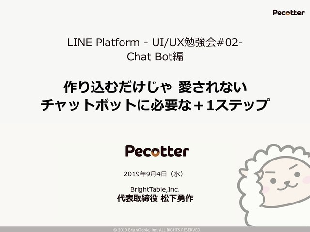 6 © 2019 BrightTable, Inc. ALL RIGHTS RESERVED. ペコッターLINEボット版