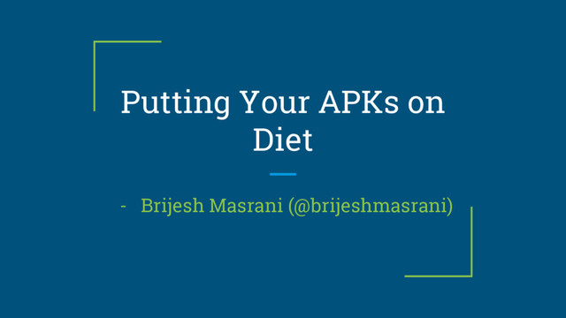 Putting Your APKs on Diet - Brijesh Masrani (@brijeshmasrani)