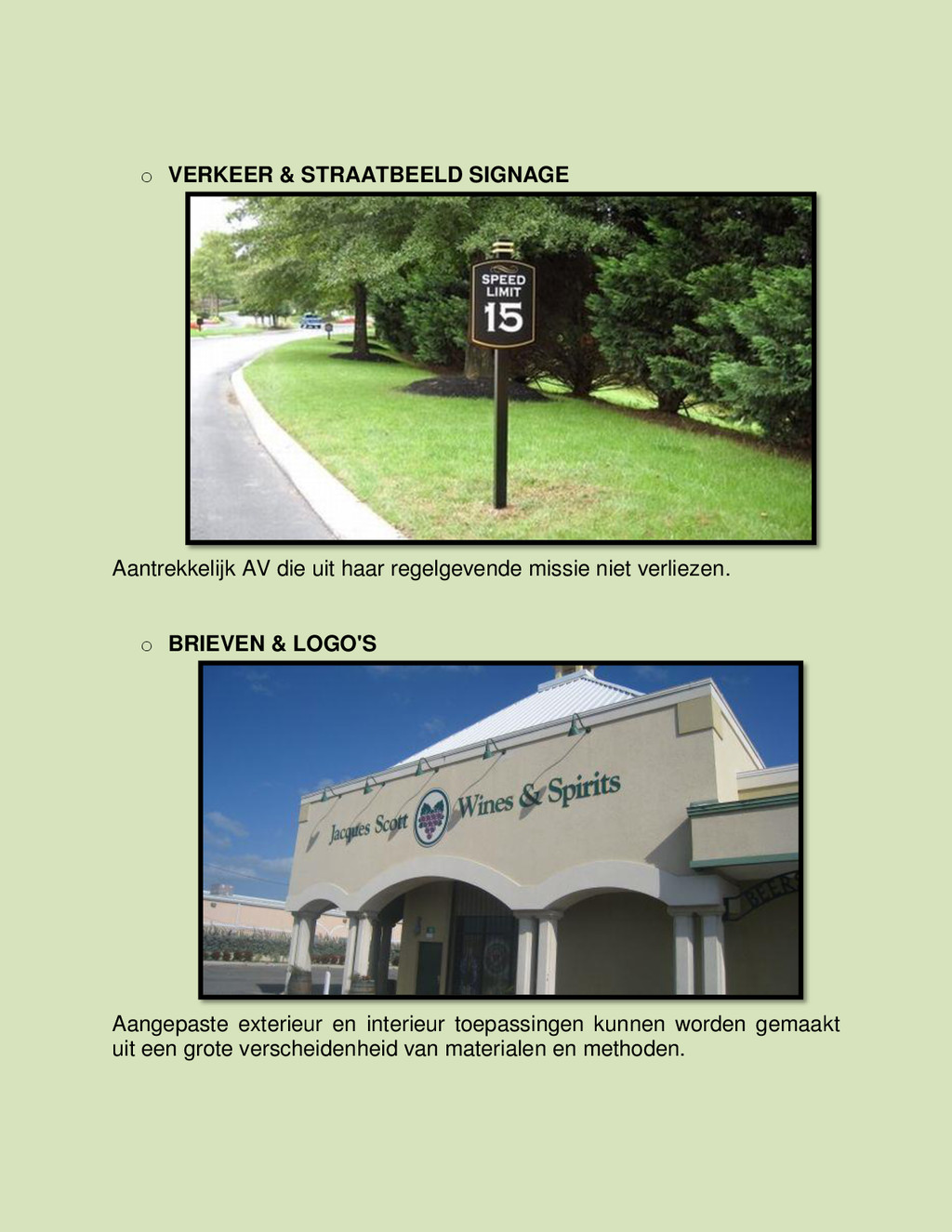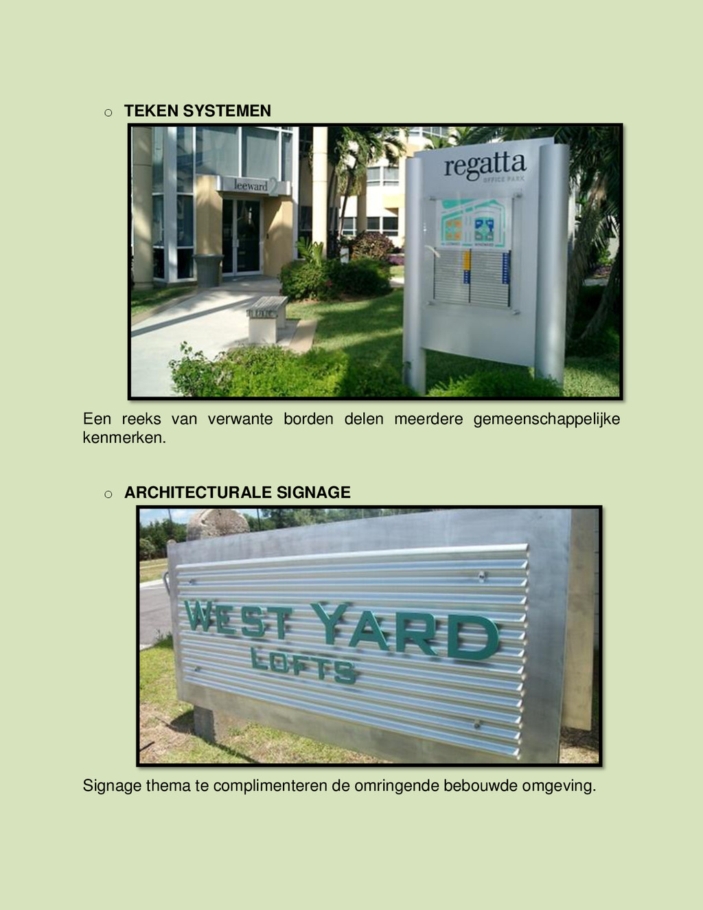Signage thema te complimenteren de omringende bebouwde omgeving.