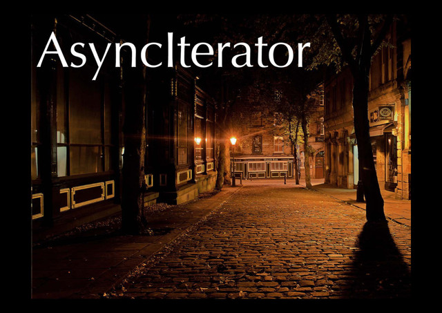async function* asyncIterator() {! yield await fetch("/a");! yield await fetch("/b");!