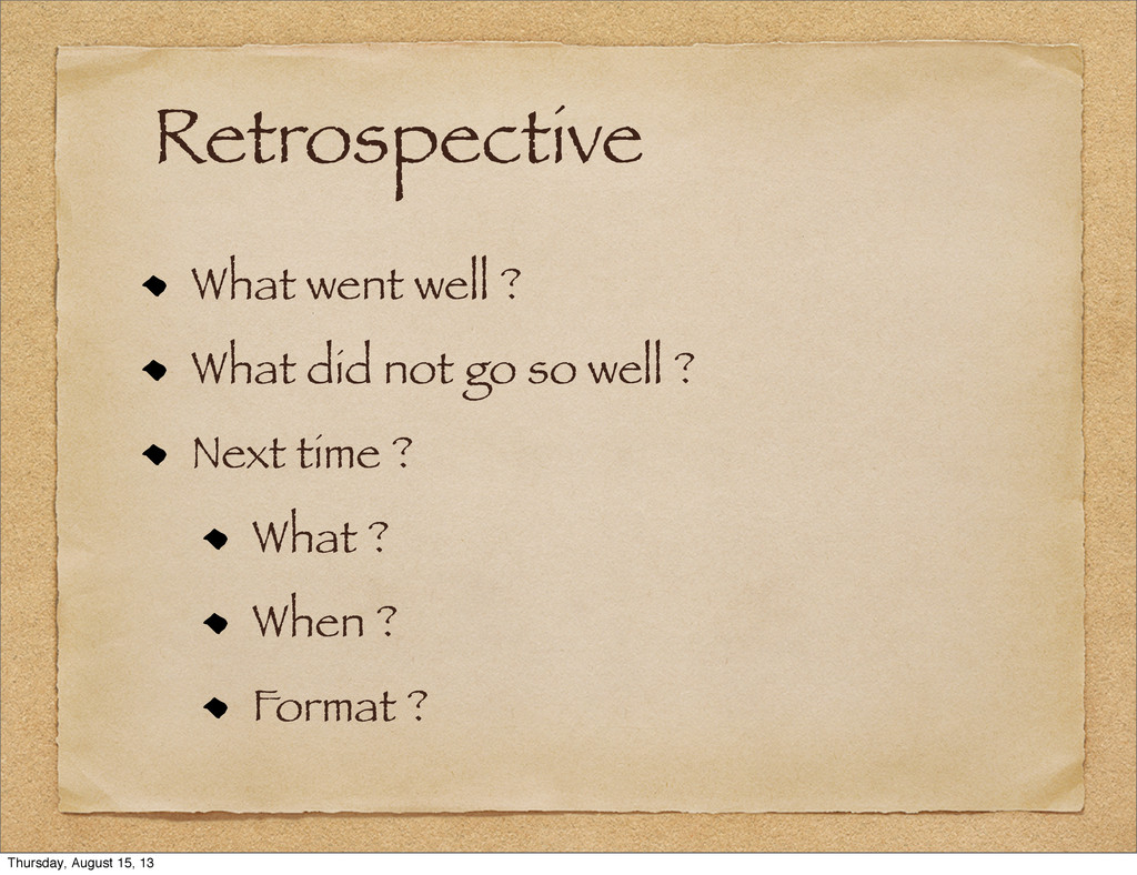 Retrospective What went well ? What did not go so