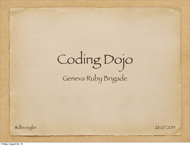 Coding Dojo Geneva Ruby Brigade @dbroeglin 28.07.2013 Friday, August 30,
