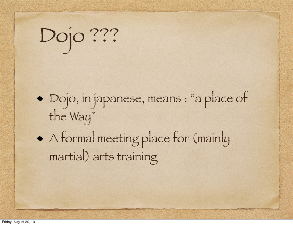 Dojo ??? Dojo, in japanese, means : “a place of