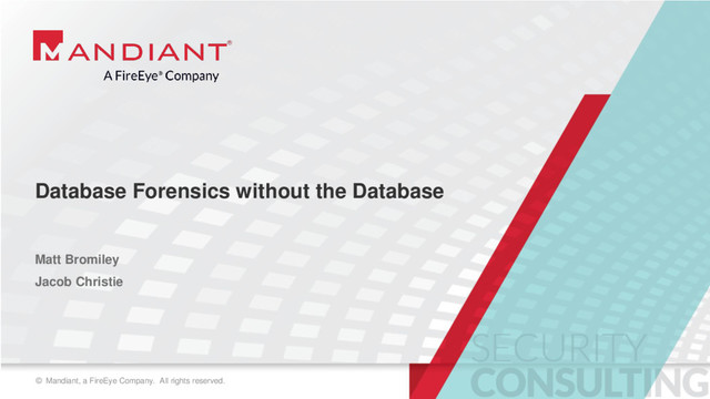 In this talk, we're going to introduce and/or improve database forensics in your incident response workflow. Only; we're not going to touch the database. Through analysis of various artifacts, we're going to show you how to build a timeline of attacker activity and discover what may have happened to your data while it was exposed. We're also going to release new research that can be used immediately to include database forensics in your next case.