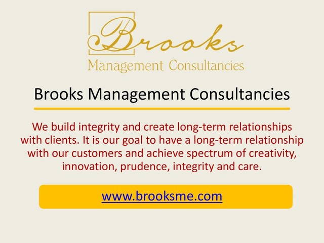 with clients. It is our goal to have a long-term relationship with our customers and achieve spectrum of creativity, innovation, prudence, integrity and care. www.brooksme.com