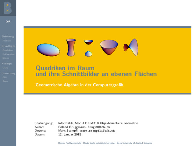 [email protected] Datum: 12. Januar 2015 Berner Fachhochschule | Haute ´ ecole sp´ ecialis´ ee bernoise | Bern University of Applied Sciences